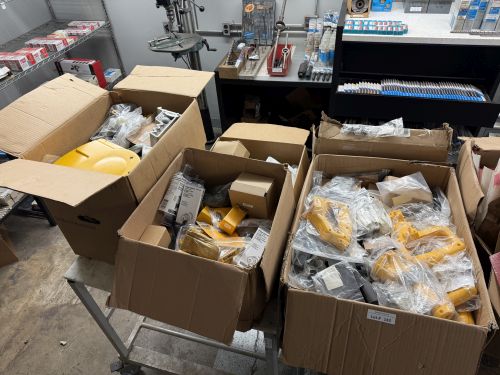 Electrical Warehouse & Tool Auction includes Milwaukee, Dewalt, Makita, electric forklift, equipment trailer, pallet racking, hydraulic press, stock room shelving, metro shelving, stainless tables, hand tools, power tools, NEW hardware, NEW inventory / stock, pallet jacks, HD warehouse carts, plumbing auger, warehouse fan, butcher block table, office furniture, NEW platform carts, cleaning supplies, air compressors, crimping machine, auto-tapers, heat sealers, wrapping machines, heated pressure washer, parts cabinets, tool testers & so much more!